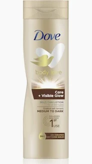 For healthy skin that glows, this Dove body lotion can be used daily as part of regular skin care routines. You can gradually build up a beautifully radiant, natural-looking tan while giving your skin the care it needs