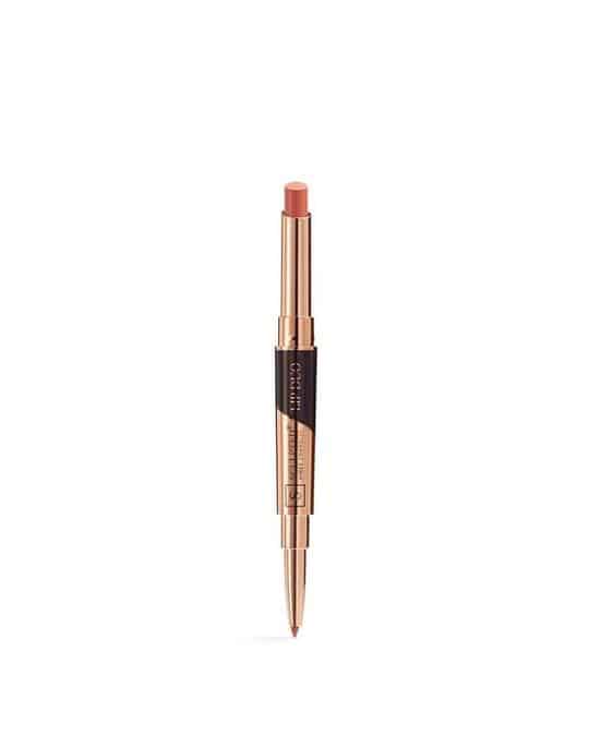 Our unique component includes a twist up liner one side and a twist up lipstick the other.
