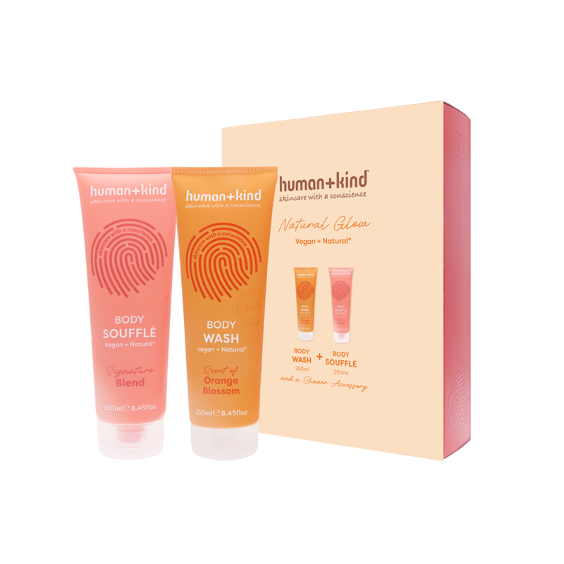 Treat yourself—or someone special—to the Human+Kind Natural Glow Set, a luxurious trio designed to refresh, nourish, and soften the skin using only natural, vegan-friendly ingredients. With uplifting citrus notes and ultra-hydrating formulas, this set brings the spa experience home for everyday radiance and care.